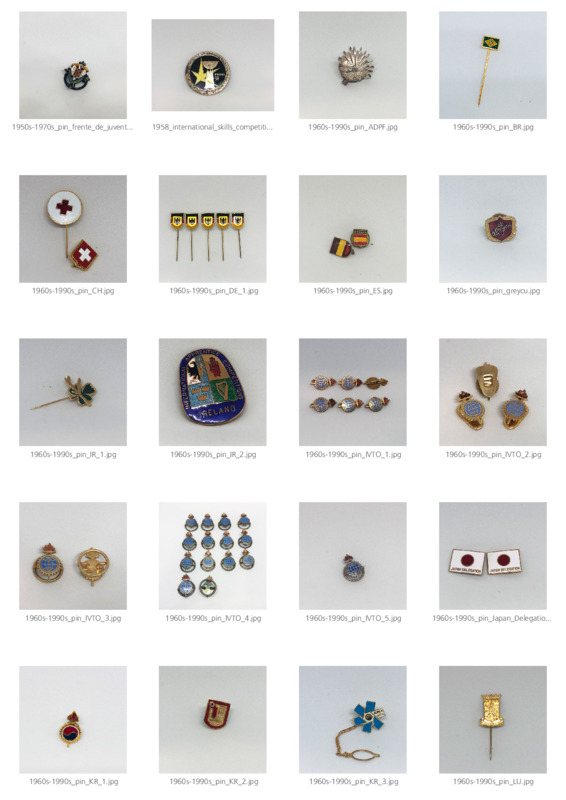 - Set of 58 commemorative pins and badges.These badges are typically handed out by Members and participating sponsors and WorldSkills partners as promotional gifts during Competitions and are popular as collectable items, often attached to clothing.