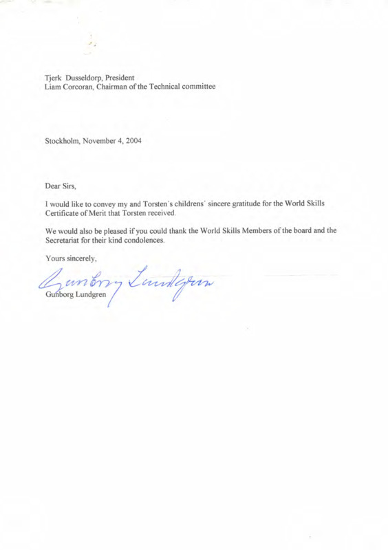 - Letter from Gunborg Lundgren to Tjerk Dusseldorp and Liam Corcoram, 04/11/2004