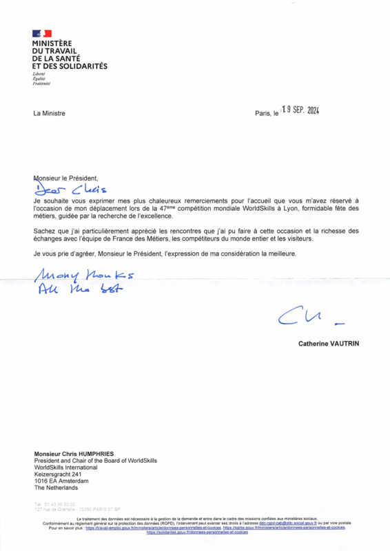 Letter from Catherine Vautrin to Chris Humphries, 19/09/2024