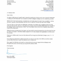 - Letter from Barrie Roe to Archie Sharkie, 21/10/2005