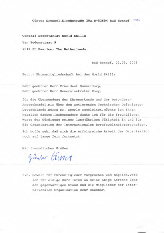 Letter from Günter Dressel to Tjerk Dusseldorp and David Hoey, 22/09/2006