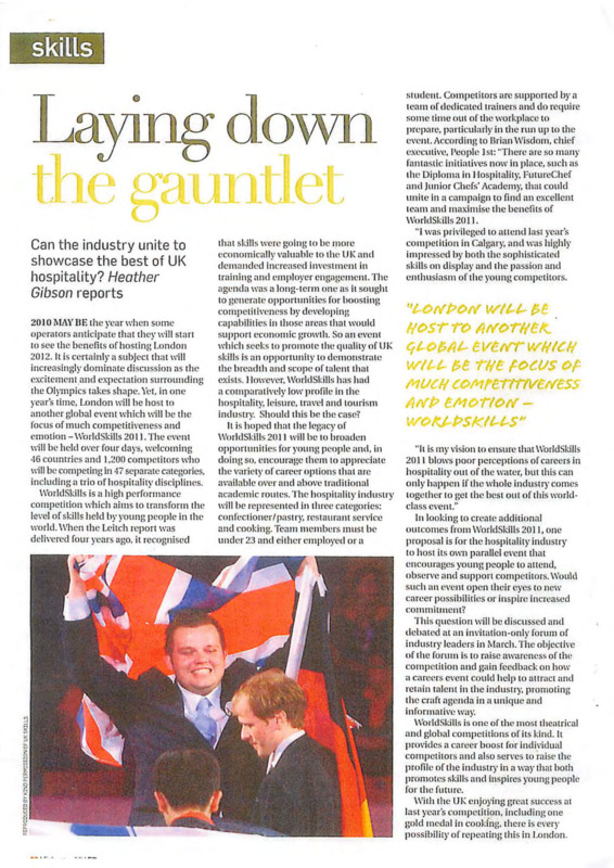 - Color photocopy of an article published in the UK hospitality trade press. The article provides an overview of the WorldSkills Competition and identifies the 41st WorldSkills Competition, London 2011 as an opportunity to promote hospitality skills and careers.