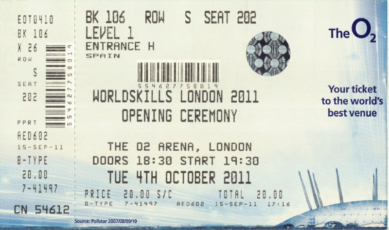 - 41st WorldSkills Competition, London 2011 - Opening Ceremony ticket entrance