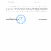 - Letter of Gratitude from the President of the Republic of Tatarstan to Worldskills International, 18/08/2019