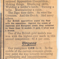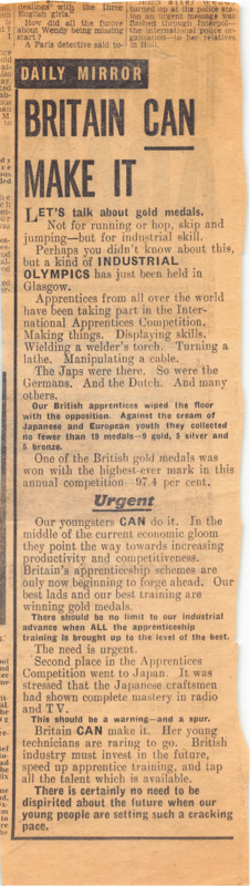Review of British success at the 14th International Apprentices Competition, Glasgow, 1965.