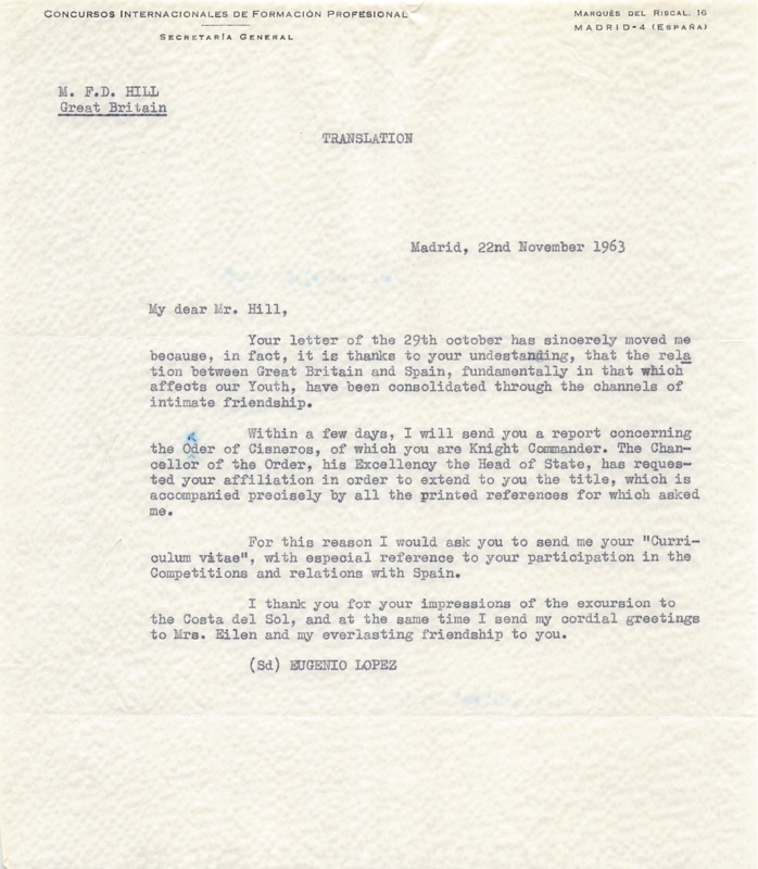 - Letter from Eugenio López to Fred Hill, 22/11/1963