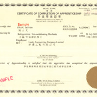 - A sample of the certificate awarded since 1976 under the Apprenticeship Training Scheme.