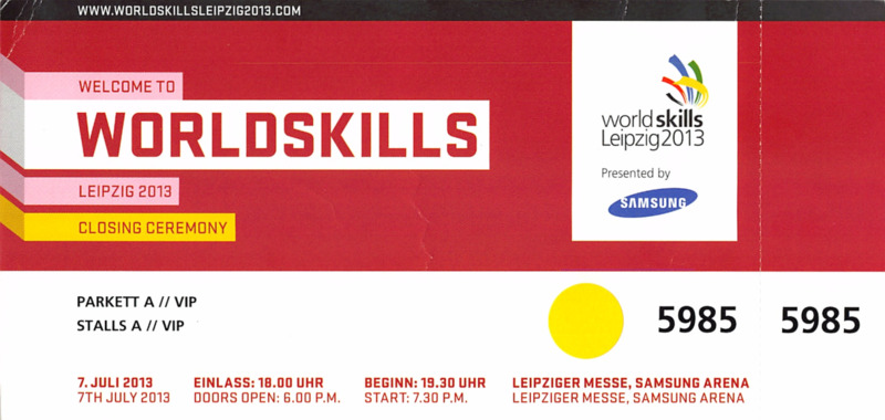 - 42nd WorldSkills Competition, Leipzig 2013 - ticket entrance to the Closing Ceremony