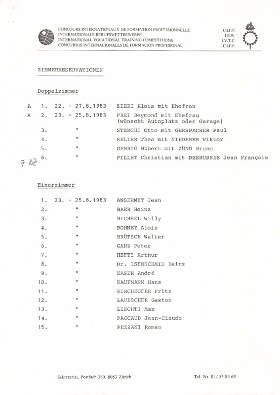 - Hotel Room Reservations – 27th International Vocational Training Competition, Linz 1983