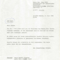 - Letter from Daniel Sommer to Mag. Hans Fink, 06/06/1983.