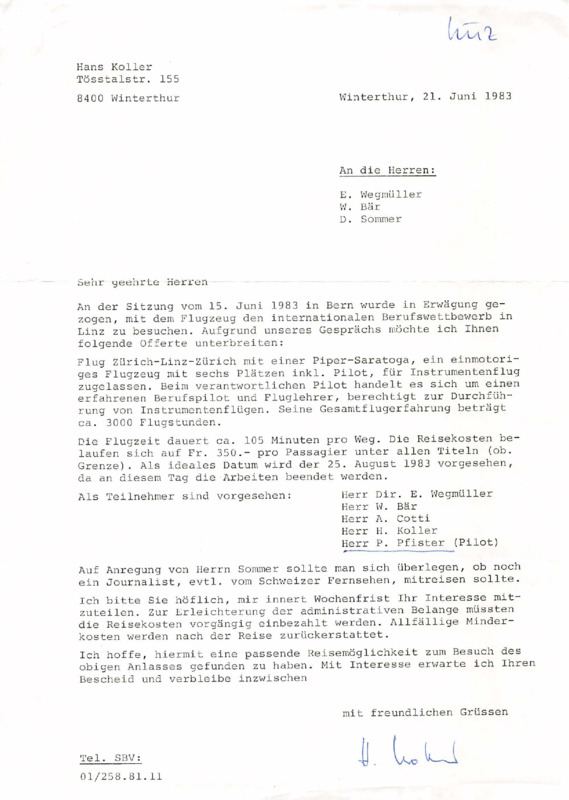 - Letter from Hans Koller to E. Wegmüller, W. Bär, and Daniel Sommer, 21/06/1983