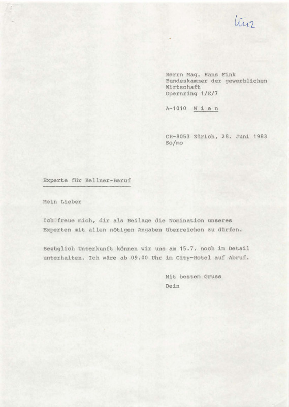Letter from Daniel Sommer to Mag. Hans Fink, 28/06/1983