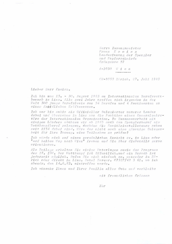 Subject: Invitation to attend the 27th International Vocational Training Competition, Linz 1983, and to consider producing a feature or report on the event and Switzerland’s involvement. - Date