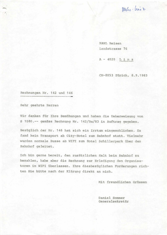 - Letter from Daniel Sommer to RAML Reisen, 08/09/1983
