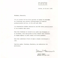 Letter from Daniel Sommer to the Observers of the 27th International Vocational Training Competition, Linz 1983 (FR)