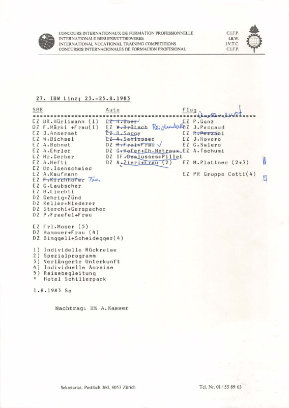 - Accommodation list for the 27th International Vocational Training Competition, Linz 1983