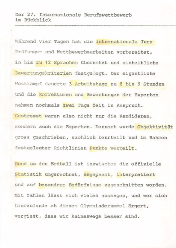 - Anonymous report on the 27th International Vocational Training Competition, Linz 1983