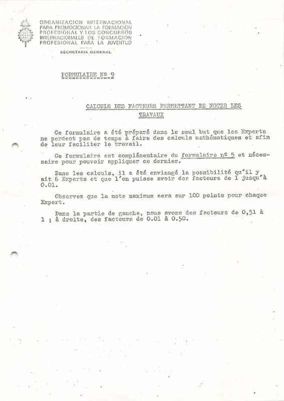 - Calculation sheet for scoring factors – blank form, 26th International Vocational Training Competition, Atlanta 1981