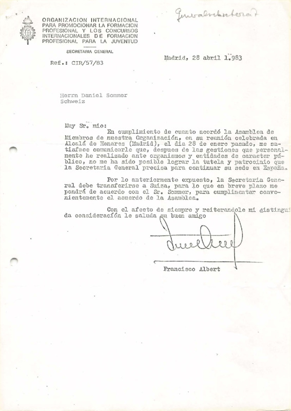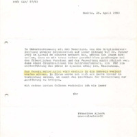 - Letter from Francisco Albert to Daniel Sommer, 11/03/1983 (ES)