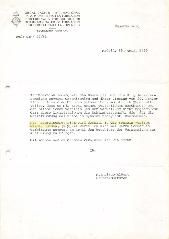 Subject: Transfer of the General Secretariat to Switzerland following the decision of the Assembly and lack of public sponsorship in Spain - Date