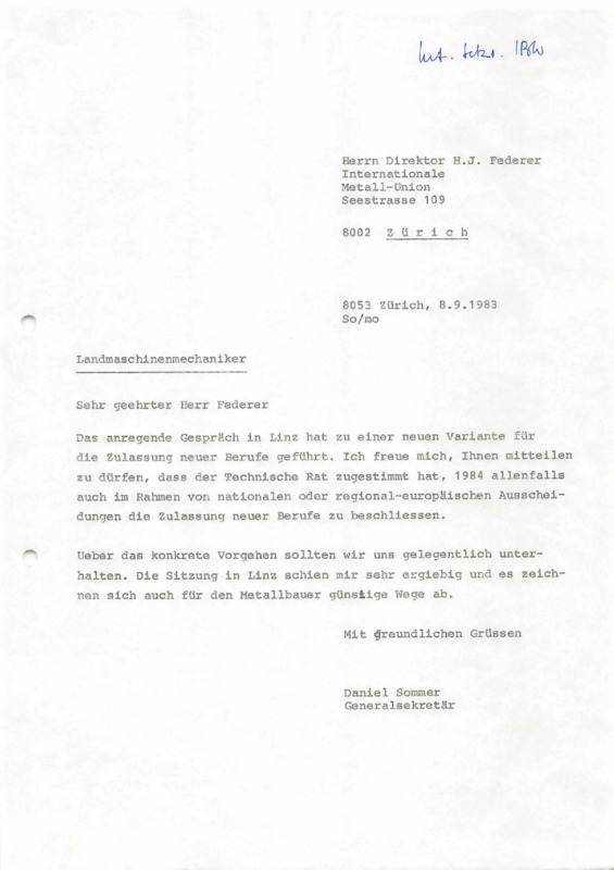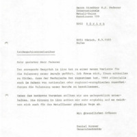 - Letter from Daniel Sommer to H.J. Faderer, 08/09/1983