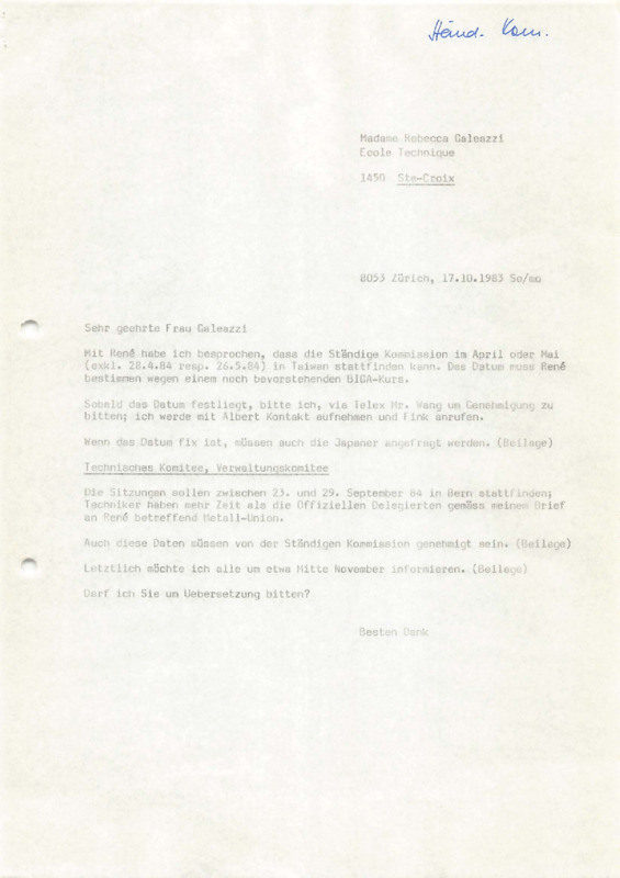 Letter to Madame Galeazzi, 17/10/1983