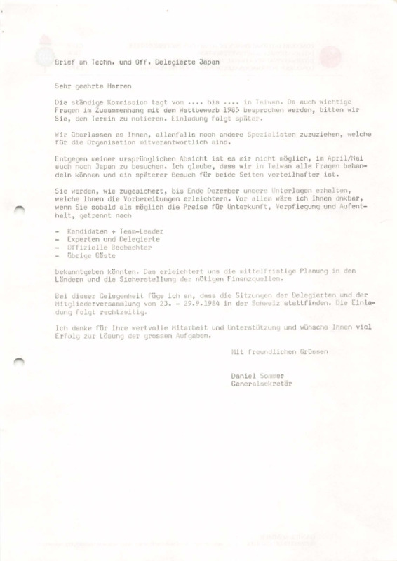 - Letter from Daniel Sommer to the Technical and Official Delegates of Japan