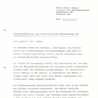 Subject: Acknowledgement of the transfer of the IVTO General Secretariat from Spain to Switzerland and expression of support for its continued management under private initiative. - Date