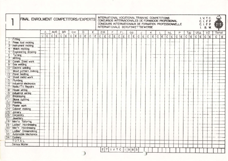 Multimedia rights: Photos or scanned version of items from the WorldSkils Archive may be freely consulted and printed for private use, teaching or research. No any other use is permitted. For any other request please contact us.