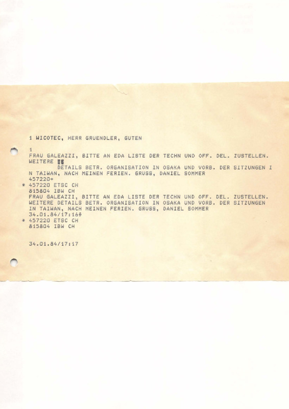 - Telex from Daniel Sommer to Frau Galeazzi, 24/01/1984
