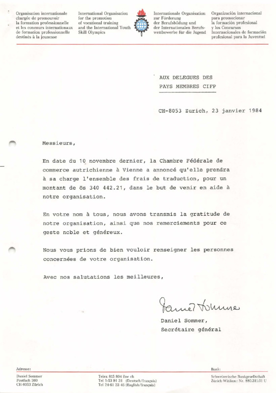 - Letter from Daniel Sommer to all Delegates, 23/01/1984 (FR)