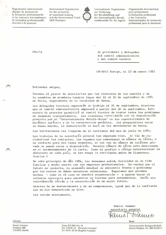 - Letter from Daniel Sommer to Delegates of the Administrative and Technical Committees, 23/01/1984 (ES)