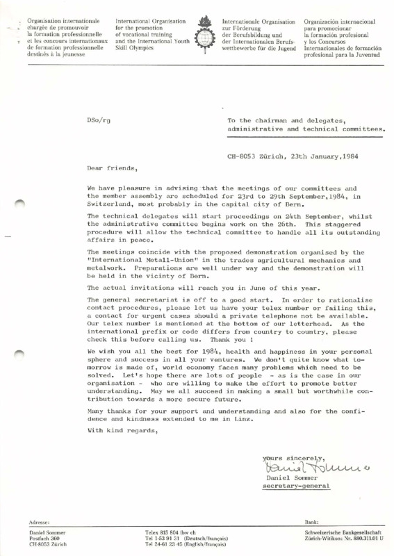 - Letter from Daniel Sommer to Delegates of the Administrative and Technical Committees, 23/01/1984 (EN)