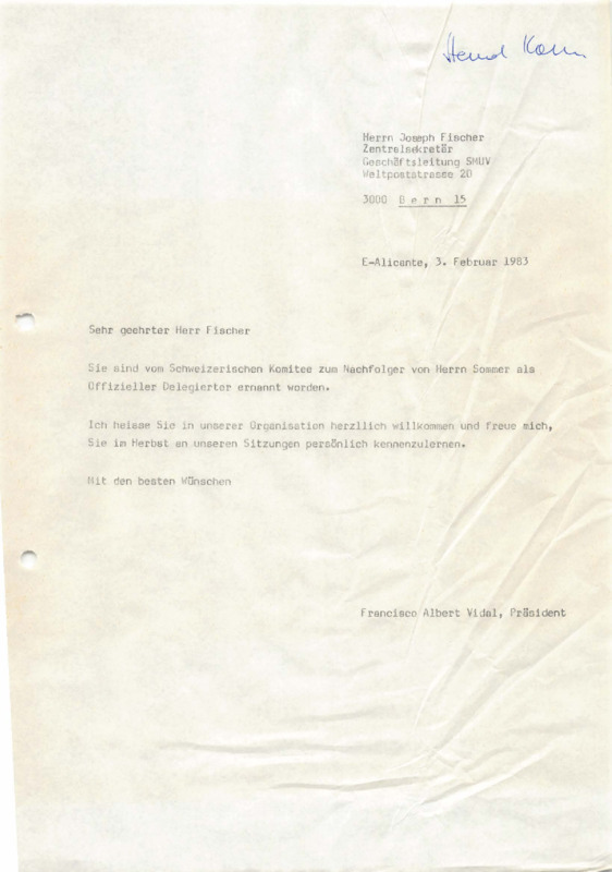 - Letter from Francisco Albert Vidal to Joseph Fischer, 03/02/1984