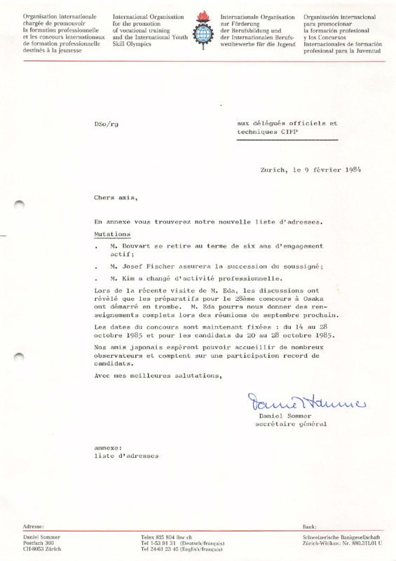 - Letter from Daniel Sommer to Official and Technical Delegates, 09/02/1984 (FR)