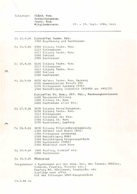 - Meeting schedule, Bern 23–29/09/1984 (DE)