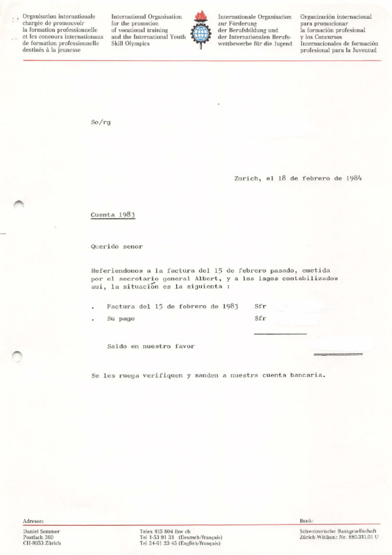 - Letter from Daniel Sommer to unspecified recipient, 18/02/1984 (ES)