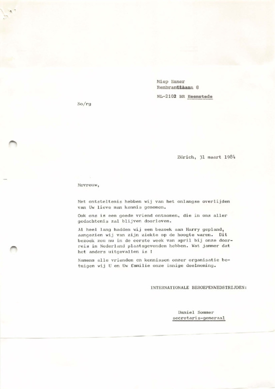 - Letter from Daniel Sommer to Miep Hamer, 31/03/1984