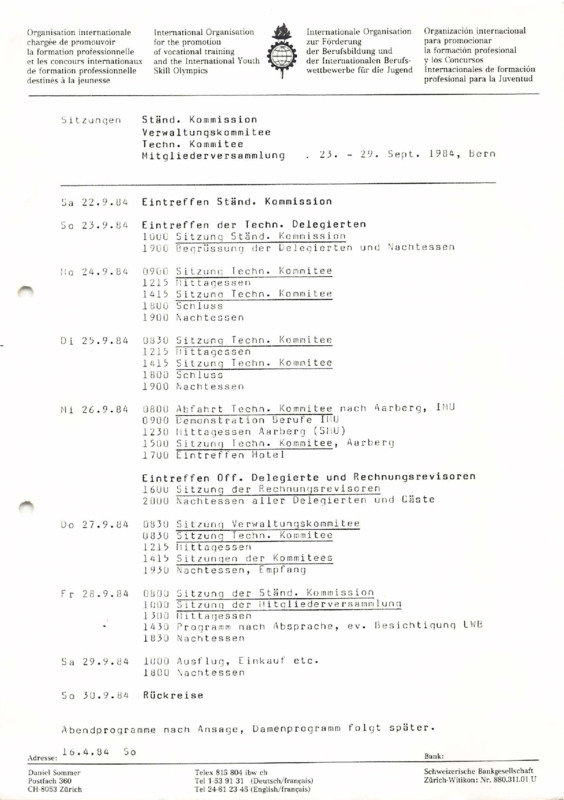 - Programme for the Standing Commission, Technical Committee, and General Assembly meetings, Bern, 23–29/09/1984 (DE)