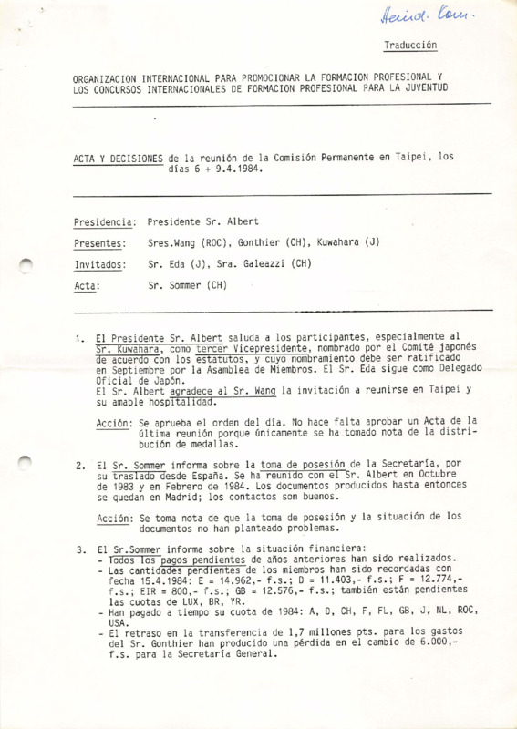 - Standing Commission meeting minutes, Taipei 06–09/04/1984 (ES)