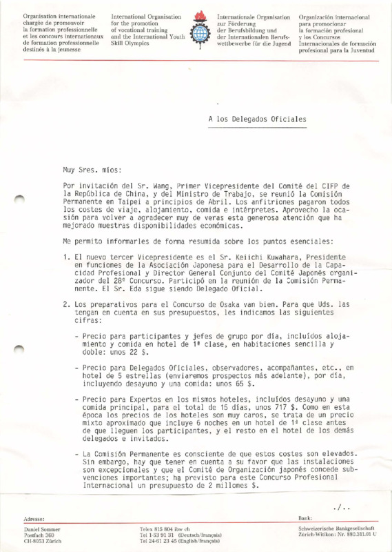 - Letter from Daniel Sommer to Official Delegates IVTC, 07/05/1984 (ES)