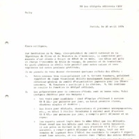 Letter from Daniel Sommer to Official Delegates IVTC, 26/04/1984 (FR)