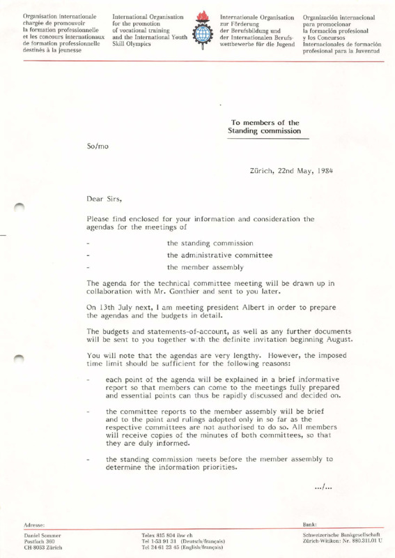 - Letter from Daniel Sommer to members of the Standing Committee, 22/05/1984 (EN)