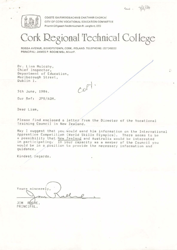 - Subject: Forwarding a letter from the Director of the Vocational Training Council in New Zealand and suggesting that information on the International Apprentice Competition (World Skills Olympics) be sent, as there may be interest from New Zealand and Australia in participating.