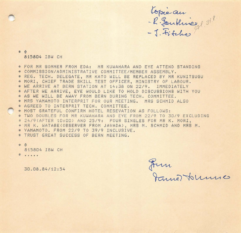 - Telex from EDA to Daniel Sommer, 30/08/1984