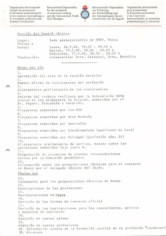 - Technical Committee meeting agenda, Bern 24–27/09/1984 (ES)