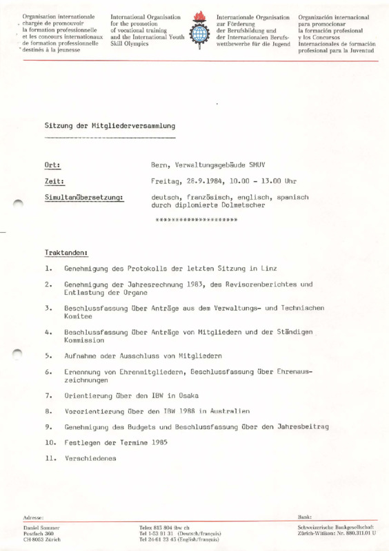 General Assembly agenda, Berne 28/09/1984 (DE)