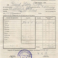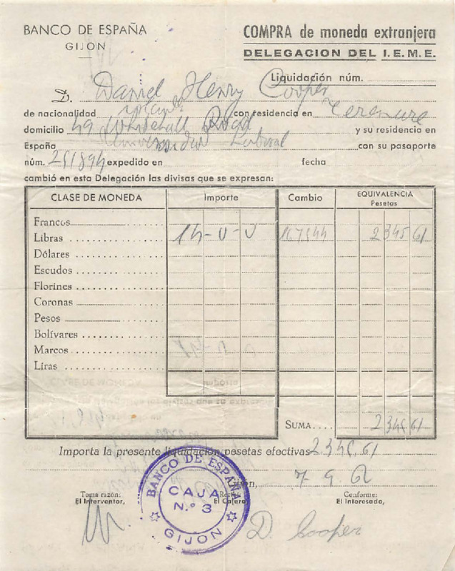 - Foreign currency exchange form, Banco de España, Gijón 1962