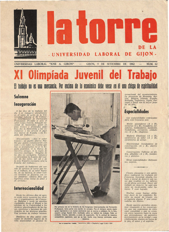- Issue of the newspaper La Torre (Universidad Laboral, Gijón) covering the 11th International Vocational Training Competition.