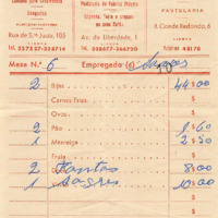 - Restaurant bill, Lisbon 1964